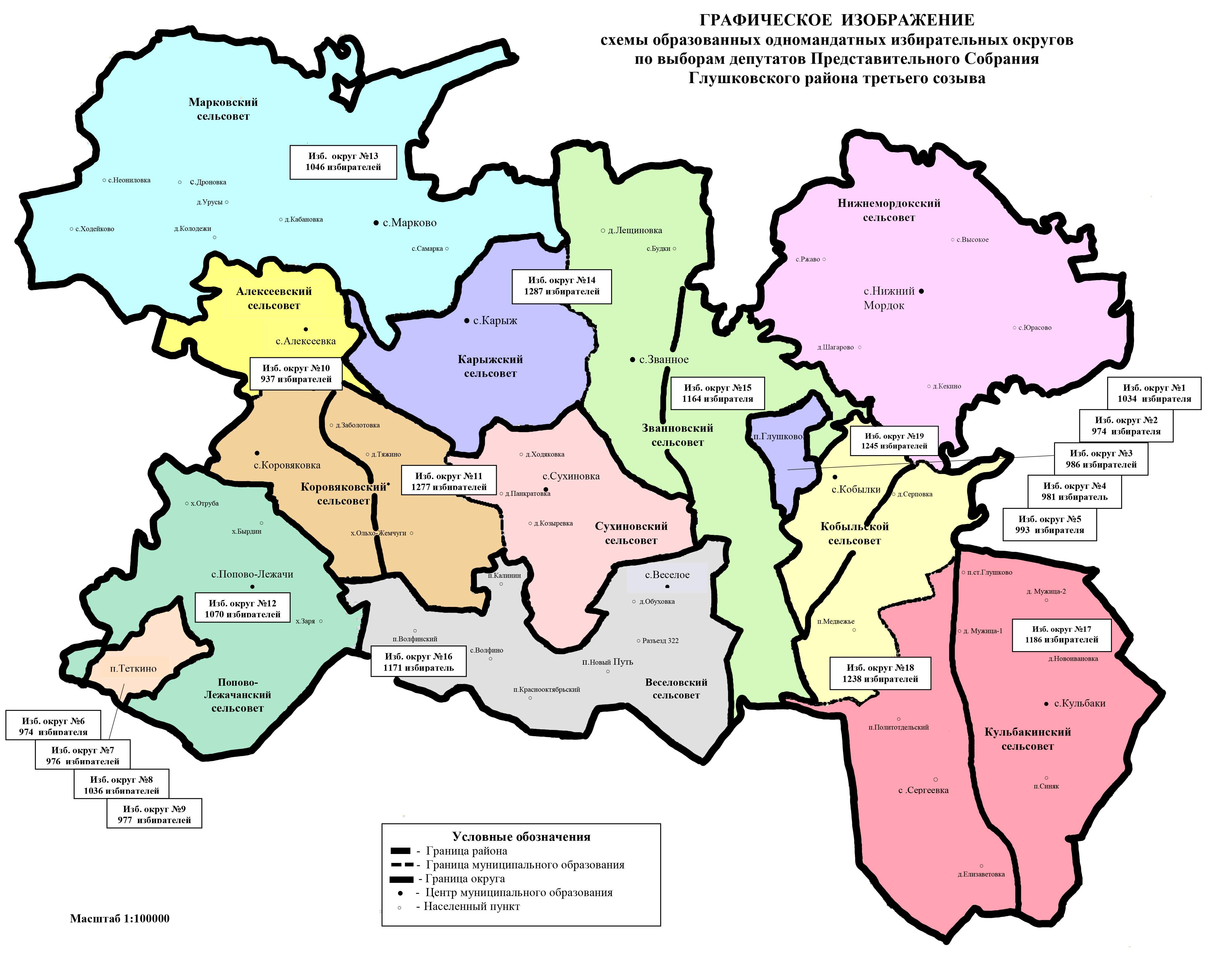 Графическое изображение схемы одномандатных избирательных округов по выборам депутатов Представительного Собрания Глушковского района третьего созыва